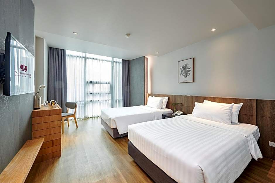 Superior Room is 312 square feet and includes either a king-size bed 150-183 width or 2 single beds 80-130 width plus ironing set, bathrobes, and slippers.